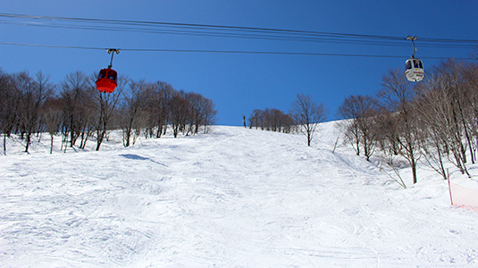 12月~4月下旬までシーズン中の全日程を滑走できる全長2,500mのメインゲレンデ。中斜面主体のコースで、積雪量によって様々なラインディングが楽しめ、コース脇の地形も面白い。北斜面で谷状のコースの為雪質も良好。