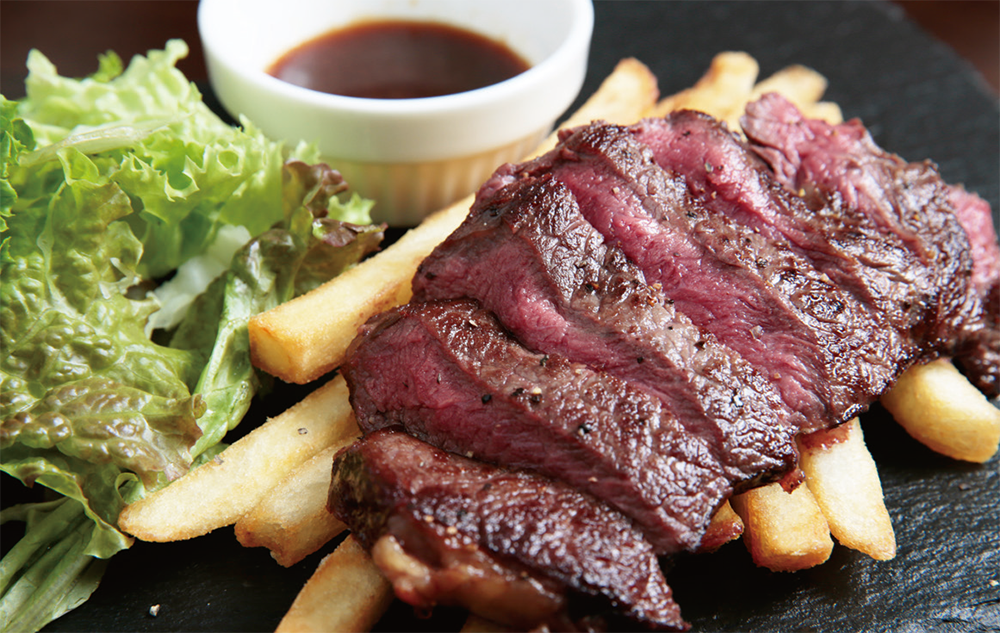 また、ランチタイム(11:00~15:00)にはお得なセットメニューも豊富。もちろん夜にも特製ビーフステーキや粗挽きハンバーグなど、ボリューミーで美味しいメニューもたくさん。HPをぜひチェックしてみよう。