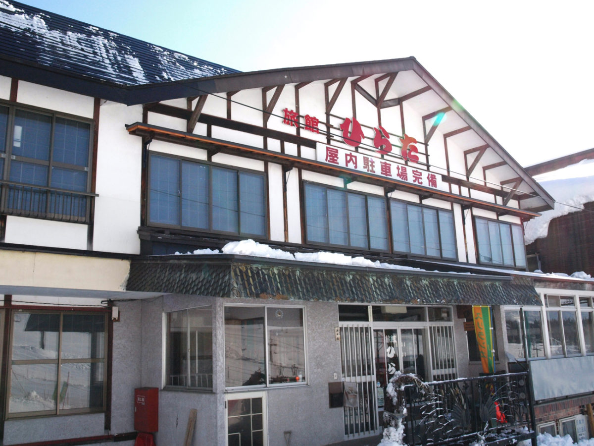ゲレンデの目の前なので、「ひらた」はランチ営業もしている。オーナーが打つ手打ち蕎麦と焼きカレーが大人気のランチメニュー。 宿の食事は心もお腹も温まるボリューム満点の家庭料理。お米は糸魚川の契約農家が作る100%コシヒカリで、最高級の一等米を使っている。