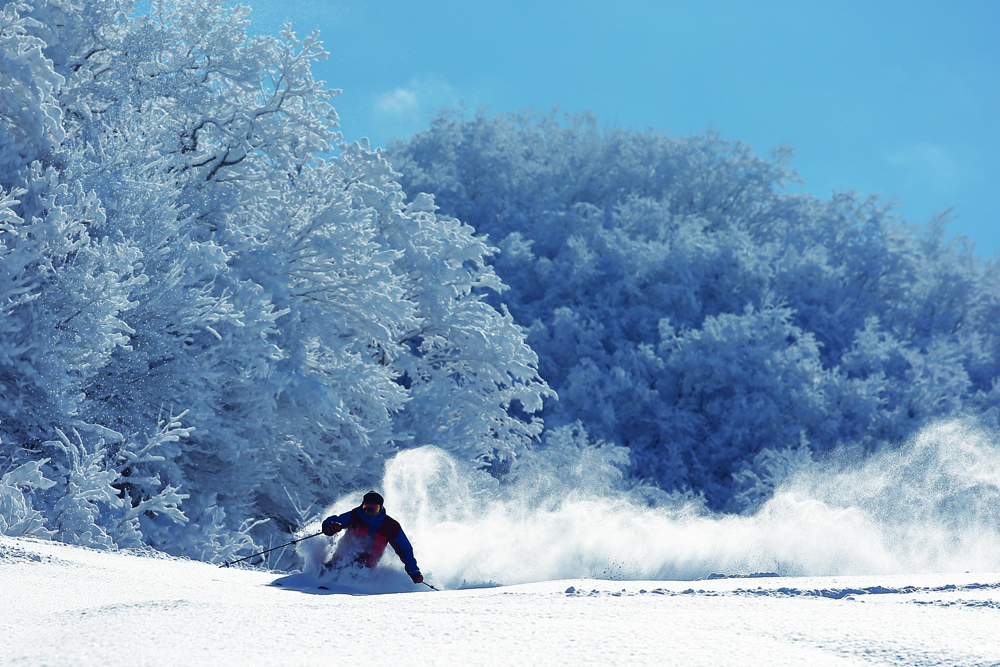 積雪の多い信越エリアを代表する人気スキー場の斑尾高原。標高は1,305mながら、質の良い雪がコンスタントに降り積もり、グッドコンディションが維持されることでパウダーが存分に楽しめる。そのパウダークオリティとたっぷりの量は「Madapow(まだパウ)」と呼ばれ、通いつめるファンも多い。斑尾高原は起伏が豊かな自然地形を活かしたコースレイアウトも魅力。特にツリーランコースの設置数は日本一! バラエティに富んだコースは圧巻ものでツリーラン日本一と呼び声も高い。パウダー・フリーライドに抜群の環境が整っているのが斑尾高原だ。