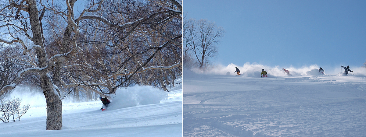 札幌市内からほど近く、札幌ステイでも十分に日帰りが可能。 多くのライダーも足を運ぶキロロの魅力は圧倒的な降雪量と自然地形のおもしろさ、そして広大なツリーランフィールドだ。ハイシーズンの月間降雪量は4mを越えることもあり、毎晩のように雪が降り、コース状況がリセットされる。安定的に気温が低いため、シーズン当初から良質なパウダーが保たれるコンディションのよさなど、人気の理由は尽きない。