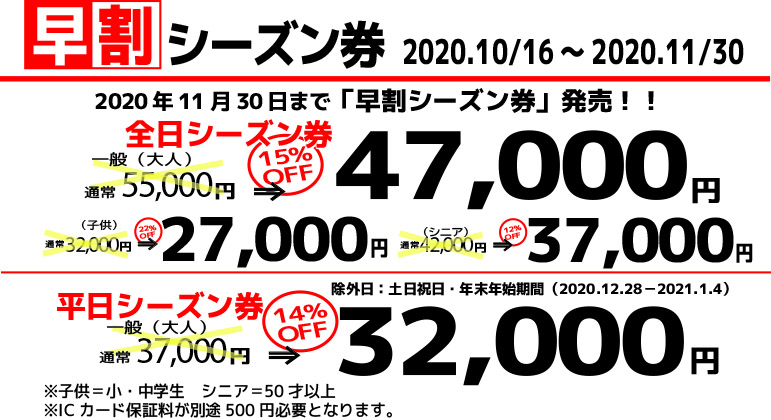 11月末の今が「早割」購入のラストチャンス‼ のシーズン券・リフト券