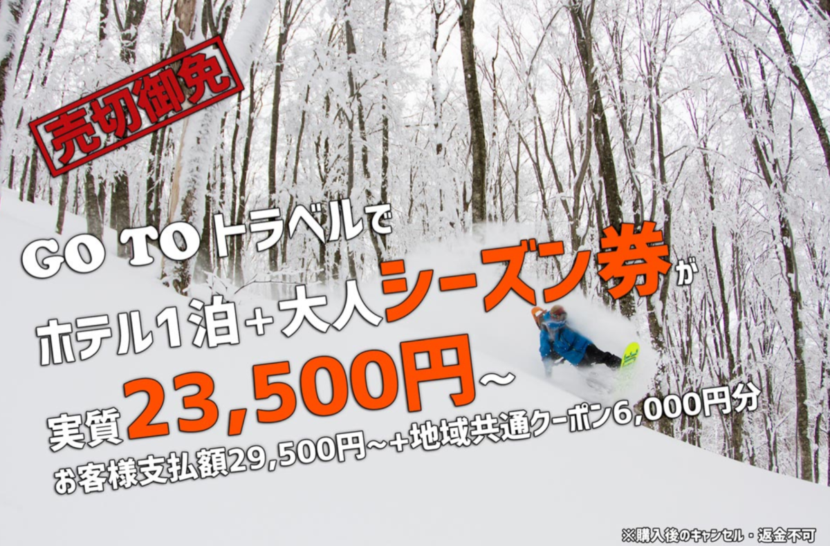 Go To でホテル1泊+シーズン券が実質 23,500円~と破格!