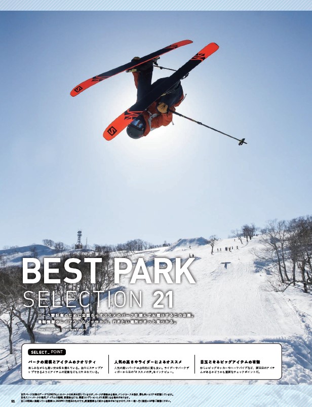 編集部がオススメする全国のスノーパークを17カ所紹介します。今季のアイテムレイアウトや最新情報を掲載しています。