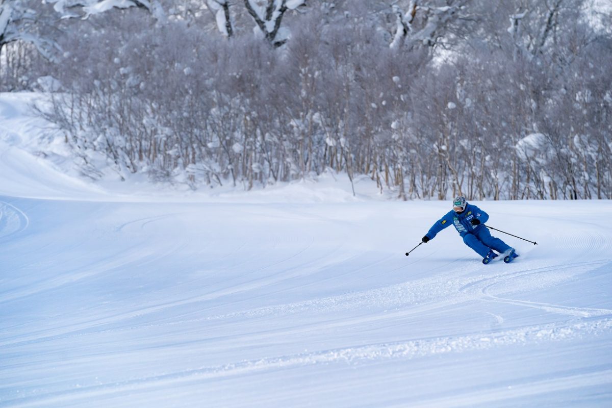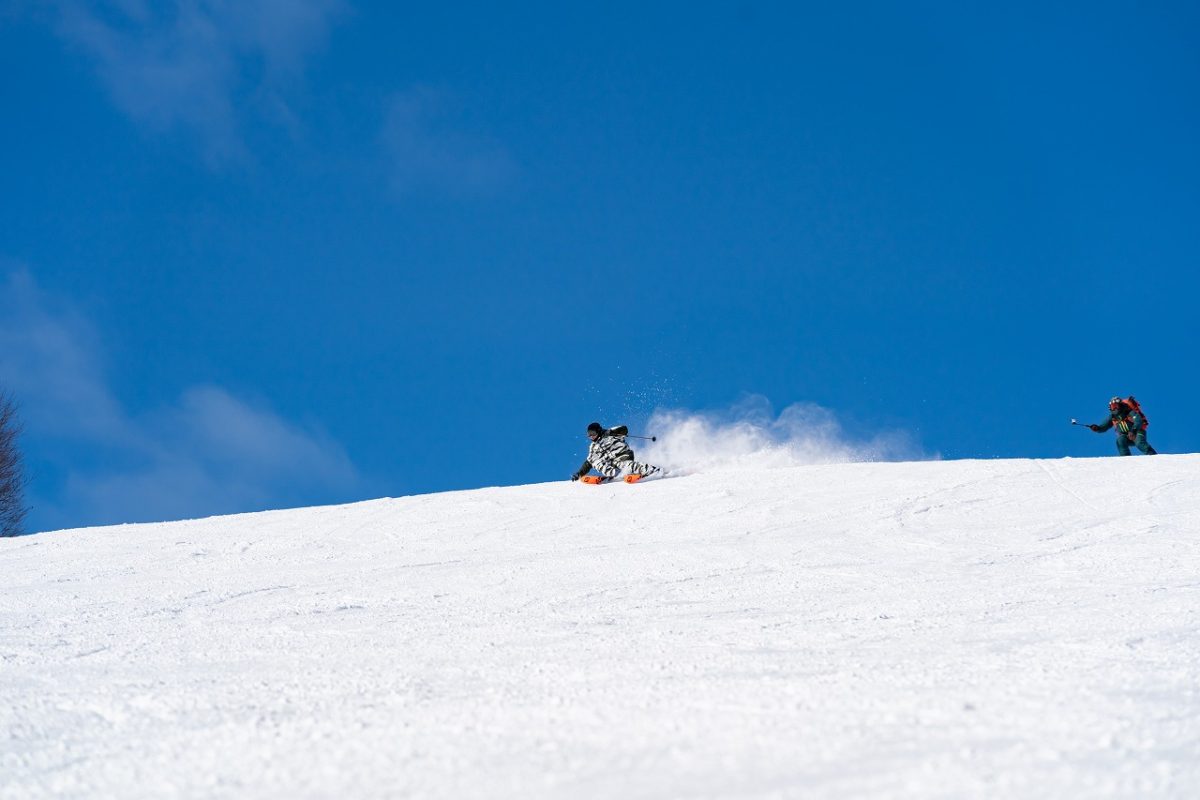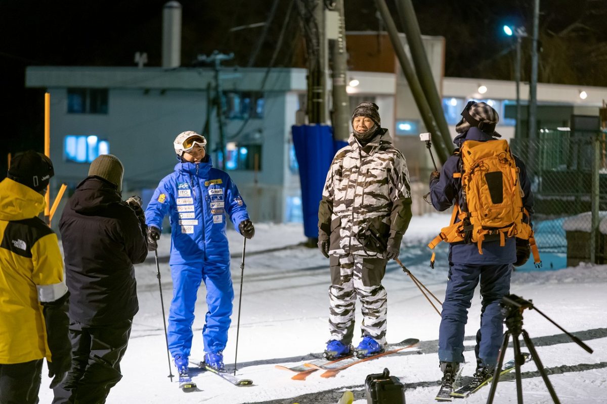 スキーを履いたら皆なかま。そのような気概が二人から溢れ出る。全く違うフィールドで活躍する2人がこれほど楽しそうに滑るのがその証拠だ。