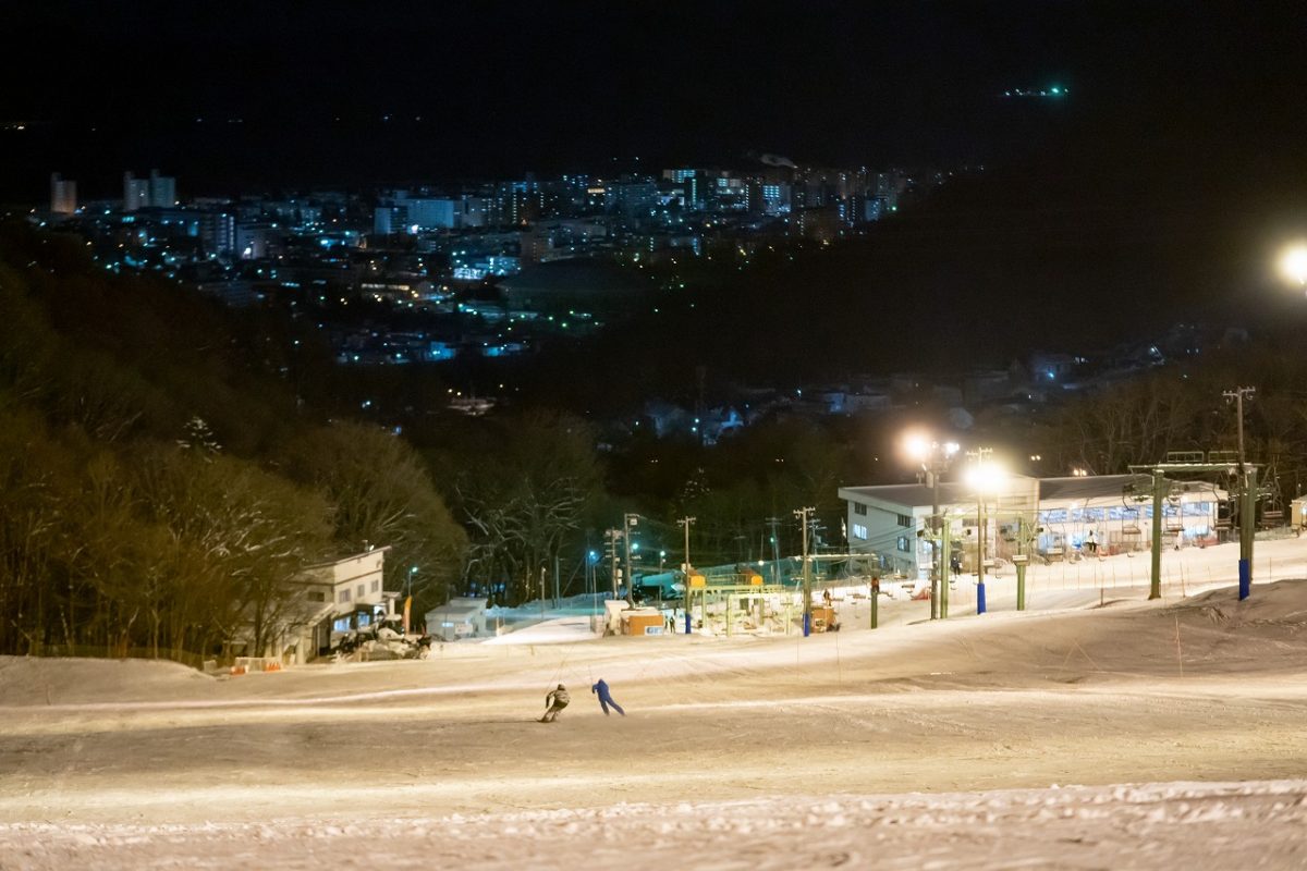 日中の滑りだけでは飽き足らず、夜はナイターへ。場所は札幌市内を一望する藻岩山スキー場だ。札幌の特筆すべき点は北海道を代表する大都市であるにもかかわらず市内にスキー場が6つもあり、藻岩山は市内中心部から20~30分で行けるというバツグンの立地にある。都会の夜景を見ながらスキーができるという、世界的にも稀有な場所だ。