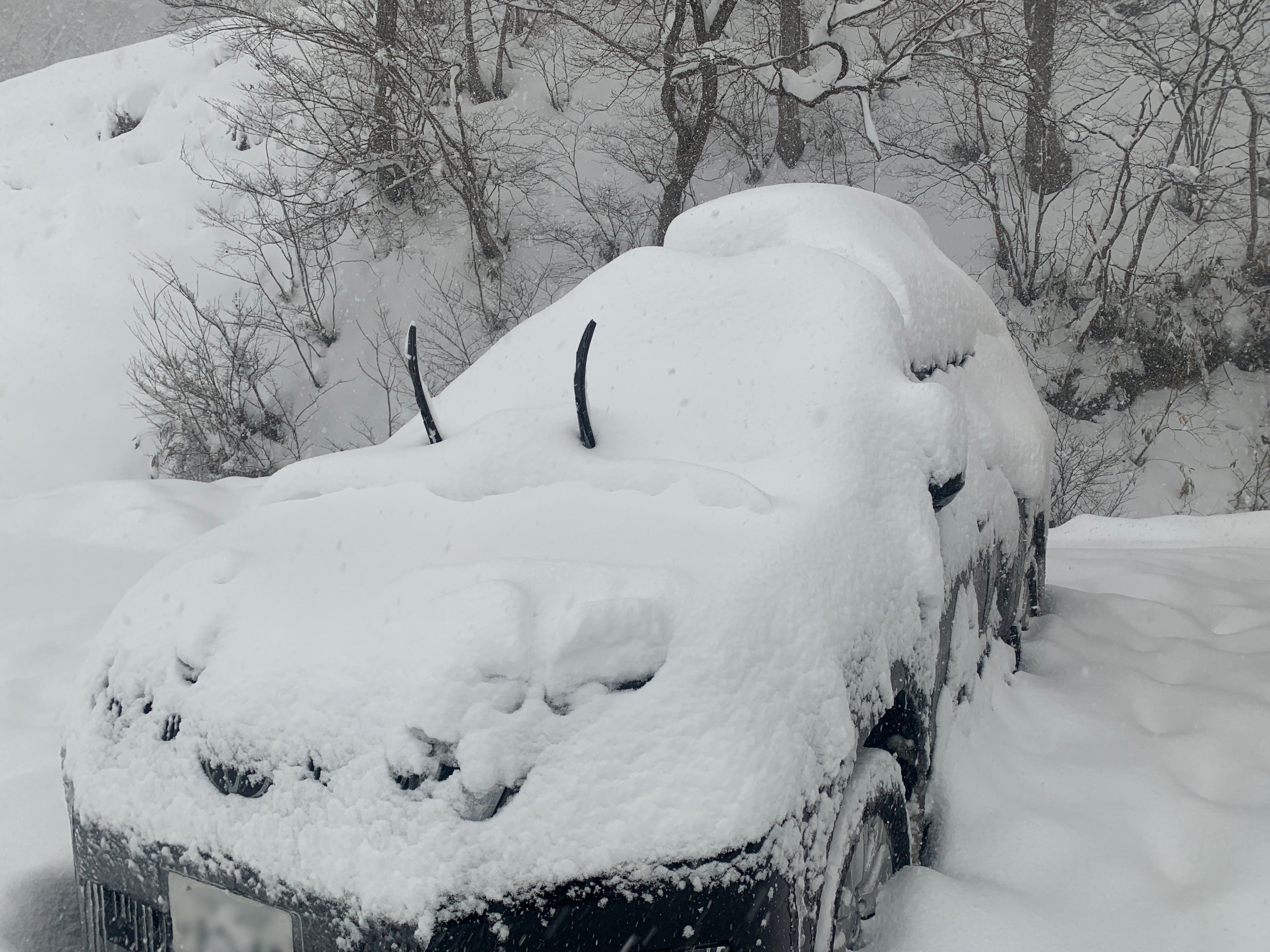 長野・山梨・岐阜・滋賀のスキー場を巡り、5日目に訪れた初訪問のスキー場。深夜の到着時には既に大雪が降り続いていて、翌朝は車の雪下ろしからのスタートになりました。朝一は残念ながら圧雪されてしまっていましたが、昼間も大雪が降り続き、ゲレンデはどこを滑っても新雪でフカフカ。午後にはさらに雪が降り積もり、スキー専用コースは膝まで埋もれるくらいフカフカバフバフで息子と2人で新雪に突っ込んで、雪に埋もれまくりの大はしゃぎな1日でした。何より驚いたのは、息子が初めての新雪を上手に滑っていたこと!