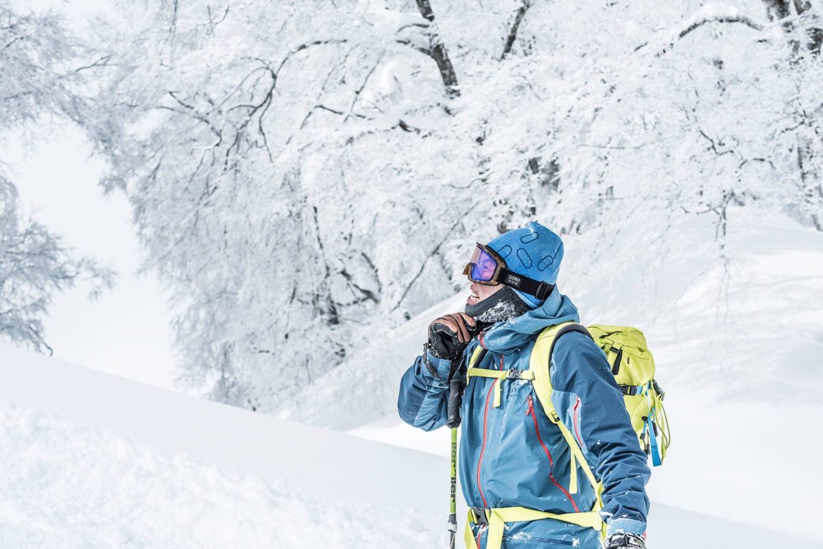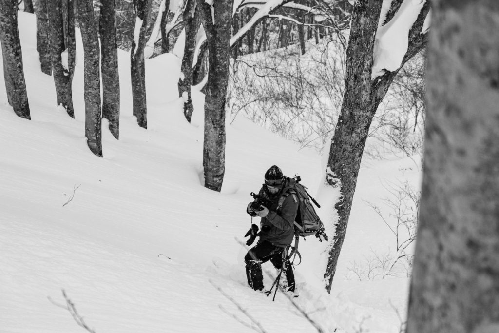 冬の間は白馬岩岳でスキーパトロールとして従事しながら、フリーライドの大会サポートやバックカントリーでの撮影に精を出す丸山真宏。