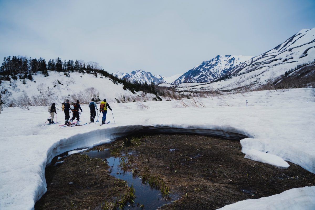 白馬大池へ滑り納めに行こうと声をかけて集まったスキーヤー5人。