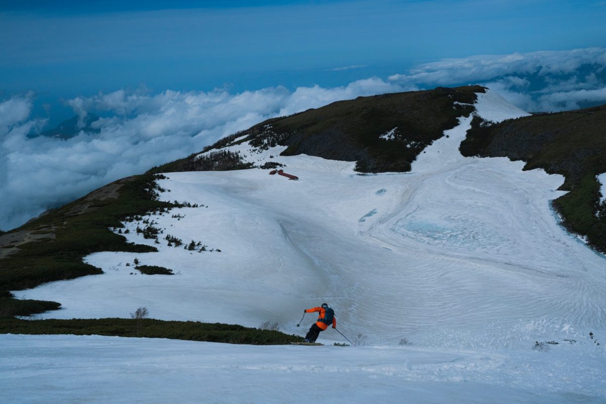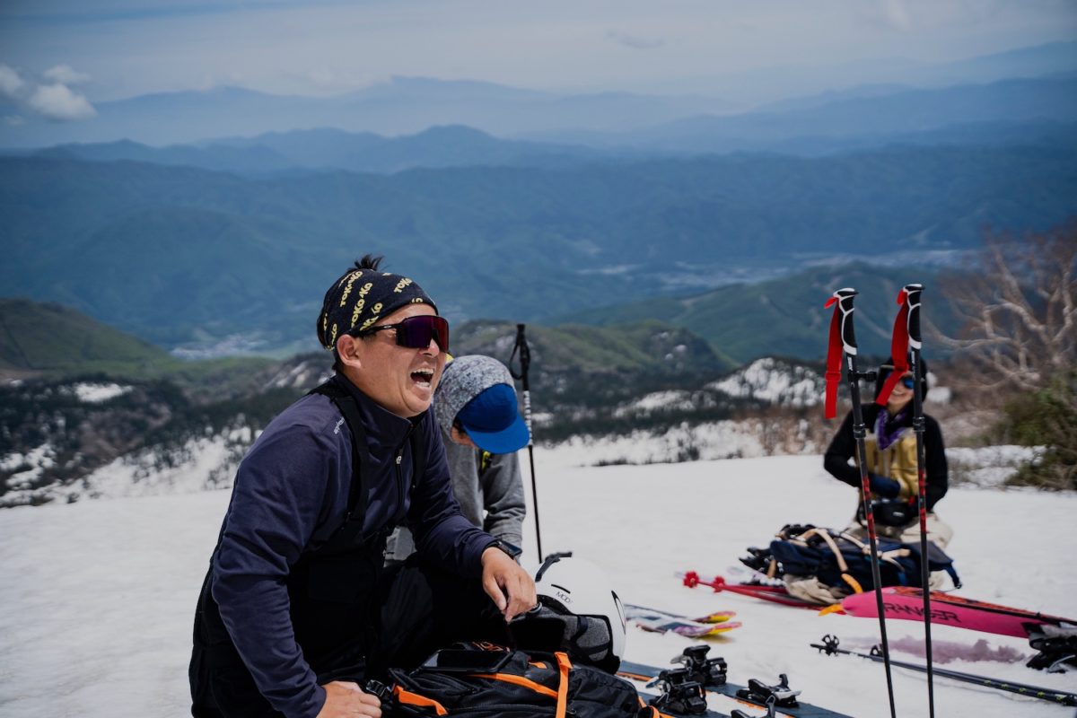 スキー場はとっくにクローズし、麓の町は濃い深緑に覆われ、爽やかな空気が漂い始めた5月下旬。彼の号令によって集まったスキーヤーたちのある日を、彼のテキストと同行したフォトグラファー伊藤剛の写真で届けしよう。