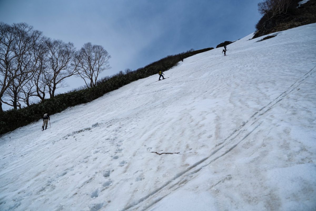 そんなことを思いながらトボトボと登っていると、船越の頭から2人のスキーヤーが颯爽と滑り降りて来た。