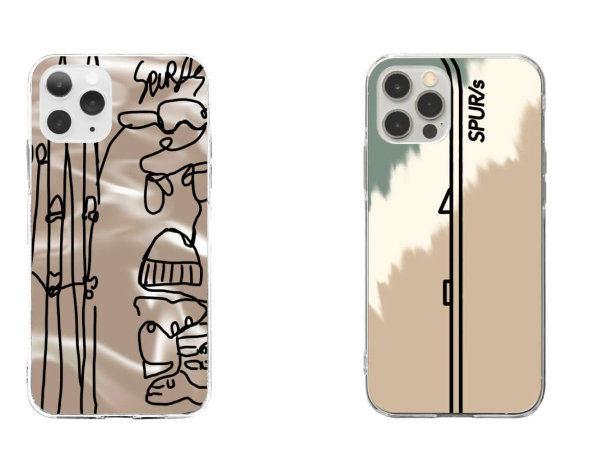 手描き風のスキーギアの線画をあしらったスマホのクリアケース。色味も落ち着いていて持ち手を選ばないテイストだ。(カラーによってデザインの配色が多少異なる場合あり。3D転写プリントのためプリント位置が最大で5mmほどずれる場合あり)