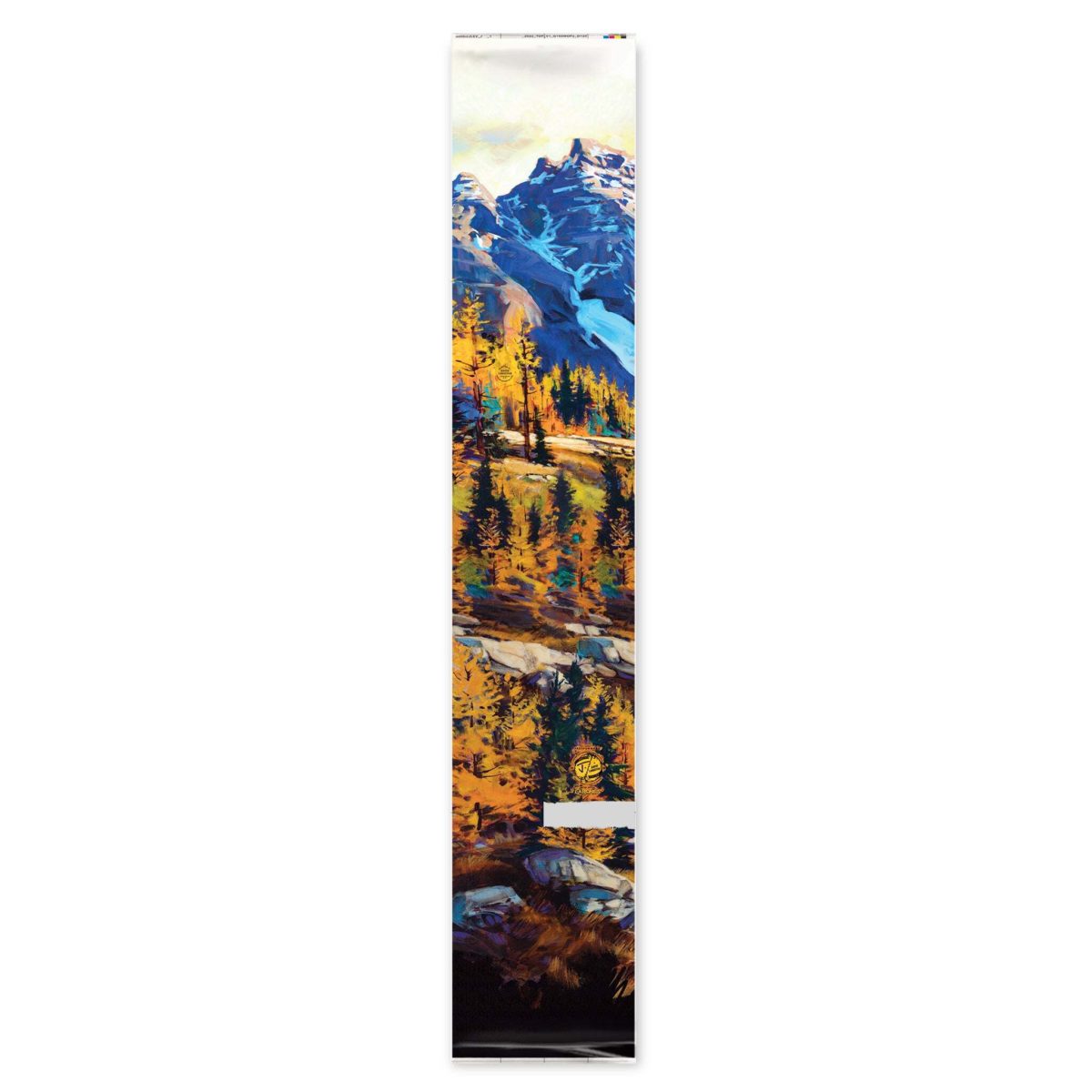 J skis 「ラーチ」David Langevin x Jコラボ限定版スキーのトップシートの現物というレアもの。カナダのスキー工場にある最新鋭の高精細デジタルプリンターで厚手プラスチックに印刷した希少なアートワーク。David Langevinは、カナダ・ブリティッシュコロンビア出身の画家で、Davidのバロック様式の風景画がスキーに完璧にフィットするとJasonがインスピレーションを感じてコラボが実現。この作品「ラーチ」は、川のほとりで紅葉を楽しみながら、山の上を見つめてスキーシーズンが近づいていることを夢見るような気分にさせてくれる。リビングに飾ってみたい。