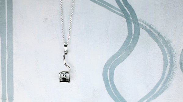 今となってはなかなか見ない希少なシングルリフト。BOGENマジックにかかると、こんなに可愛いペンダントップになる。背もたれにはBOGENの「B」が。チェーンは60㎝。Tシャツなどとナイスマッチしそう。