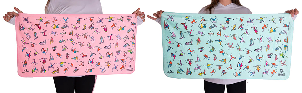 21/22MTNスイムコレクションのインスピレーションのアートワークをフィーチャーしたデザインのマイクロファイバートラベルタオルは、夏の大人気商品のひとつ。スイミングやキャンプなどアウトドアアクティビティからデイリーユースにも最適なサイズ。