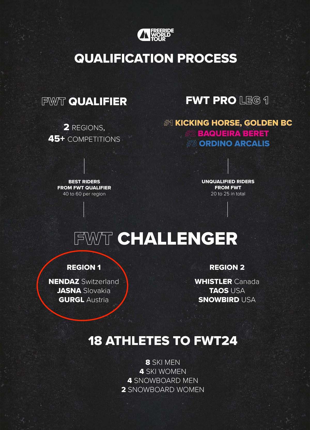この時点で、ヨーロッパとオセアニア、アジアの選手を管轄する”REGION1”内にて、国内予選で高得点を記録した選手たちと、すでに昨季の成績によって出場権を獲得している選手、合計14名が3月4日からはじまるFWT Challengerの出場権を獲得した。
